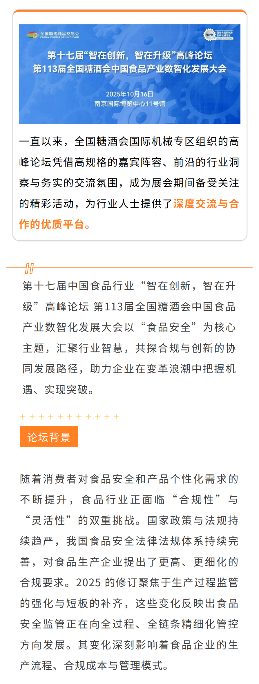 重磅来袭!行业专家齐聚中国食品行业高峰论坛,诚邀您的加入!