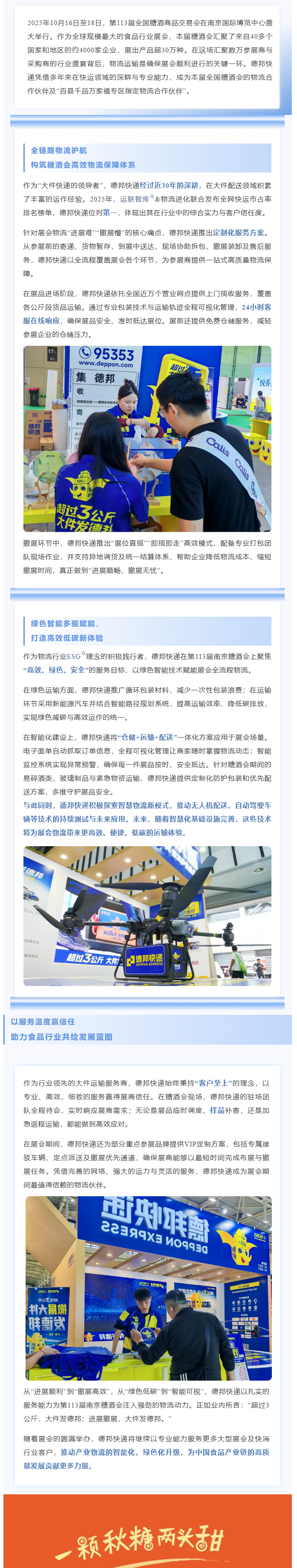 德邦快递护航第113届南京糖酒会:绿色智能物流赋能展会高效运转