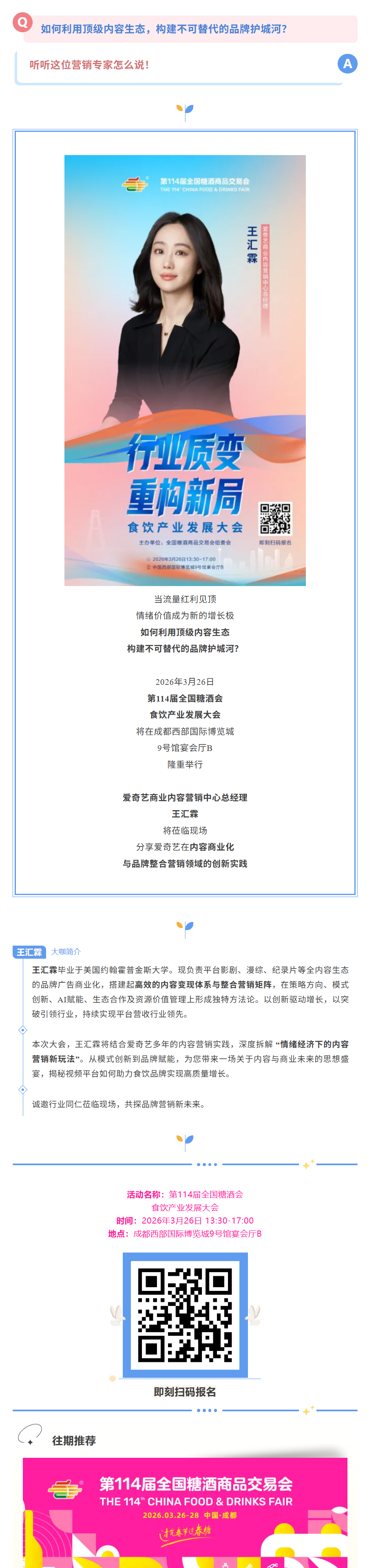 重磅预告 爱奇艺王汇霖确认出席!深度解读内容商业化与品牌营销新趋势