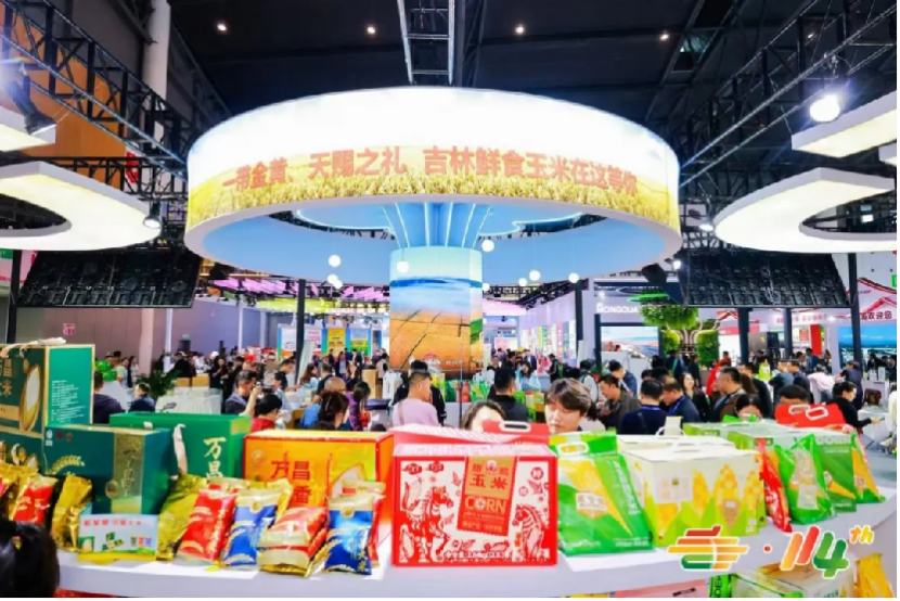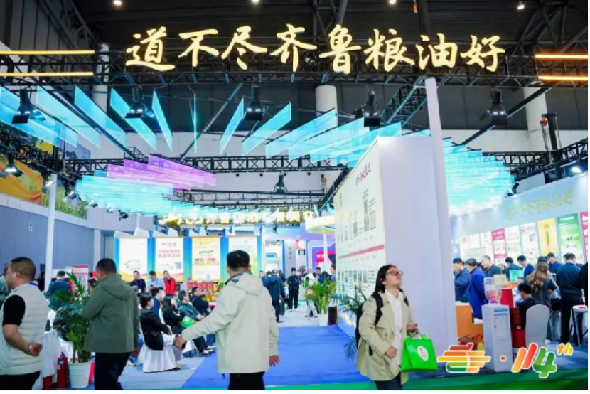 山东展团“齐鲁粮油”的展位前500余种精品粮油飘香,吉林展团的“一饭一肉”品鉴区让晶莹的吉林大米遇上雪花牛肉。