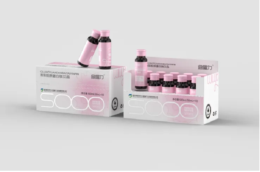 刺梨胶原蛋白肽饮品:选用德国嘉利达生物活性牛胶原,搭配贵州高维 C 刺梨与透明质酸钠。口感丝滑,酸甜清爽,无腥腻感。粉色玻璃瓶身,便携舒心,贴心守护女性日常状态。