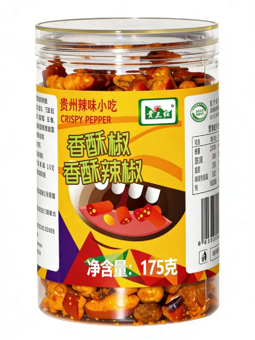 创新亮点:独家低温锁脆工艺 + 秘制复合香辛料配方,辣椒酥香不糊、色泽鲜红油亮。