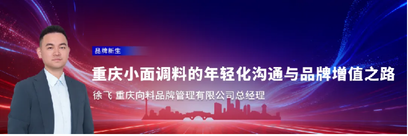 徐飞(重庆向料品牌管理有限公司总经理)将以《重庆小面调料的年轻化沟通与品牌增值之路》为主题,解锁两大破局思路: