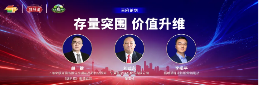 作为本次大会聚光灯下的重磅环节,天府论剑《存量突围 价值升维》由胡键(上海宝琚咨询有限公司调味品项目总顾问、《调料家》渠道顾问)主持,会同优秀企业代表刘式东(宁夏草原阿妈食品有限公司董事长)、李振平(四川新希望味业有限公司营销副总)现场展开一场深度的思想碰撞。