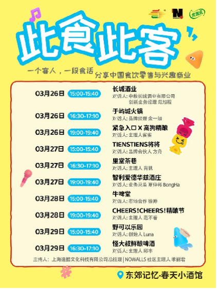 喝完这一杯,现场还有全新板块「此食此客」酒馆对谈等你来听。我们将对话现场商家主理人,聊聊那些关于小零售与流动商业的街头生意经,分享藏在市井烟火里的行业故事。