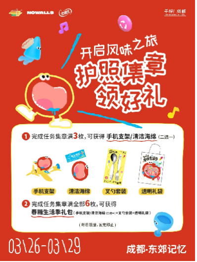 进入活动现场,请第一时间领取这份「春糖美食护照」,跟随护照指引,完成集章任务,就能免费带走包含定制手机支架、手提袋等好礼在内的春糖限定大礼包。