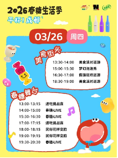 倒计时1天!2026春糖生活季「干杯!成都」即将于3月26日-3月29日火热启幕!