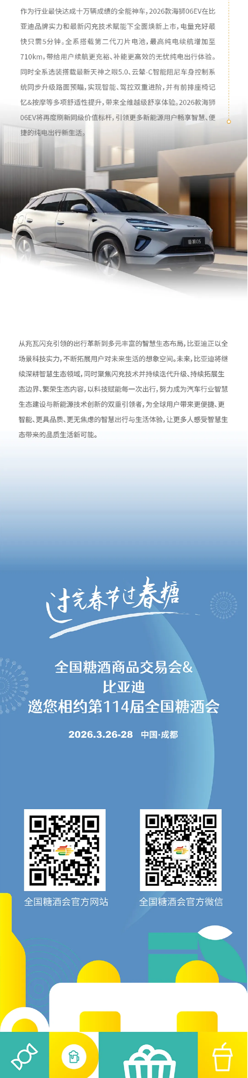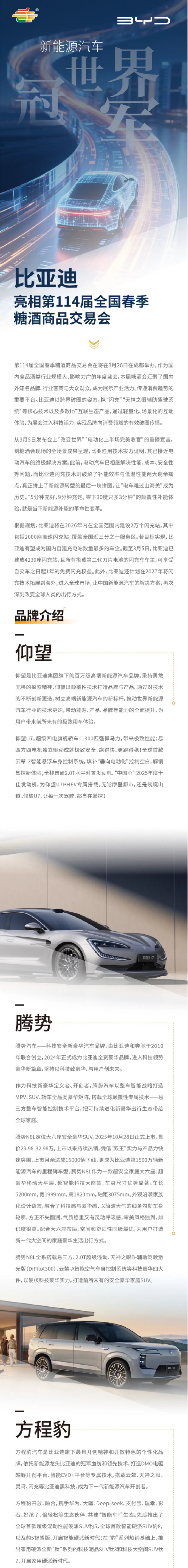 新能源汽车世界冠军 比亚迪亮相第114届全国春季糖酒商品交易会