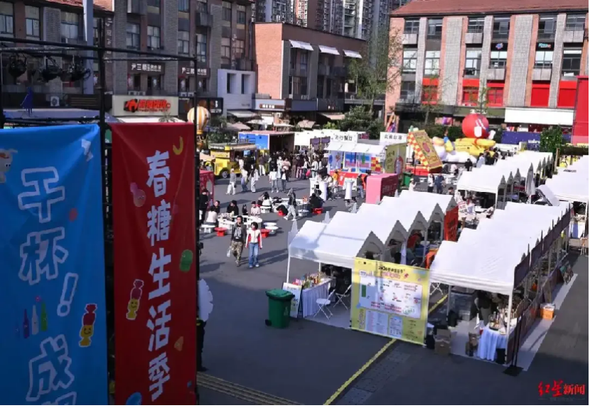 如果说展馆里的热闹是行业内部的狂欢,那么走出展馆,糖酒会的另一面则属于这座城市和它的居民。今年,糖酒会继续把触角伸向成都的大街小巷,举办了为期近一个月的“2026春糖季”展城融合促消费活动。从3月初到3月底,成都各区(市)县结合自身特色,推出了一系列“春糖+”主题活动,糖酒会的热度从展馆蔓延到商圈、景区、社区,让“过完春节过春糖”成为成都市民和游客的春日共识。